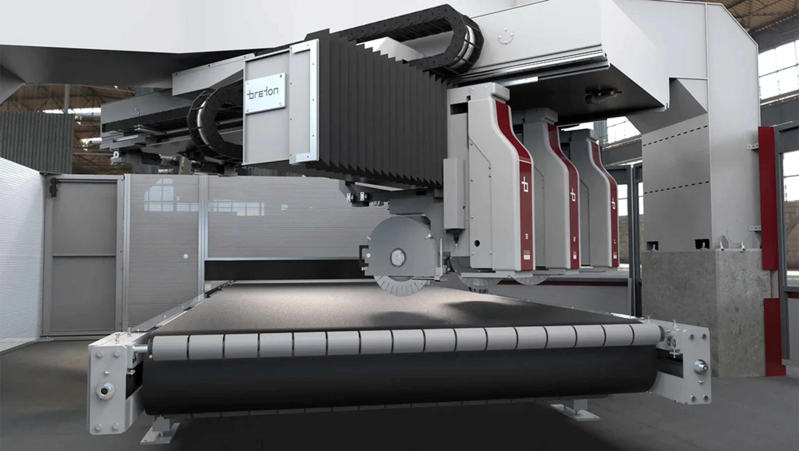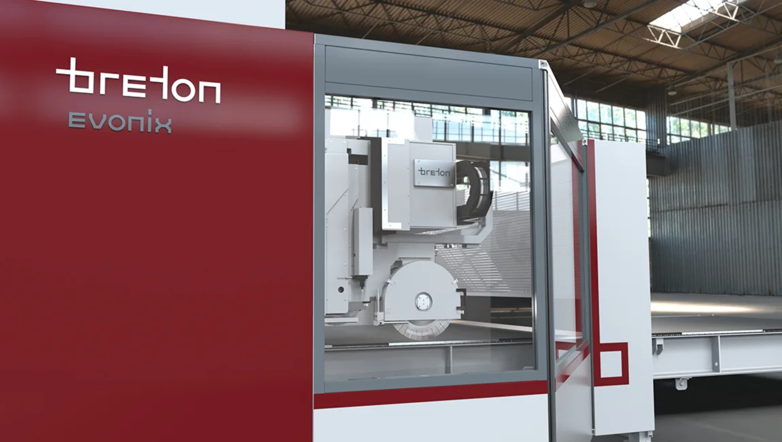 Breton Evonix — многопильный станок нового поколения с поворотным мостом и ультралёгкими шпинделями, выполняющий прямые, наклонные, вертикальные и горизонтальные резы по мрамору, граниту, кварцу и керамике; архитектура на линейных и торк‑моторах сокращает цикл и повышает точность.