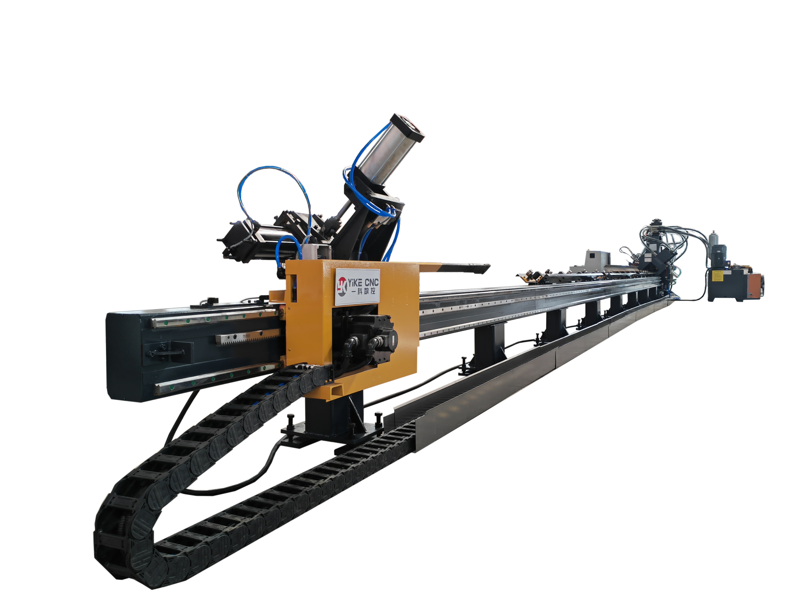 Мощная ЧПУ‑линия для крупного сортамента уголков/полосы/швеллера с автоматическими узлами маркировки, пробивки и резки; подходит для тяжёлых условий и высокой плотности отверстий.
