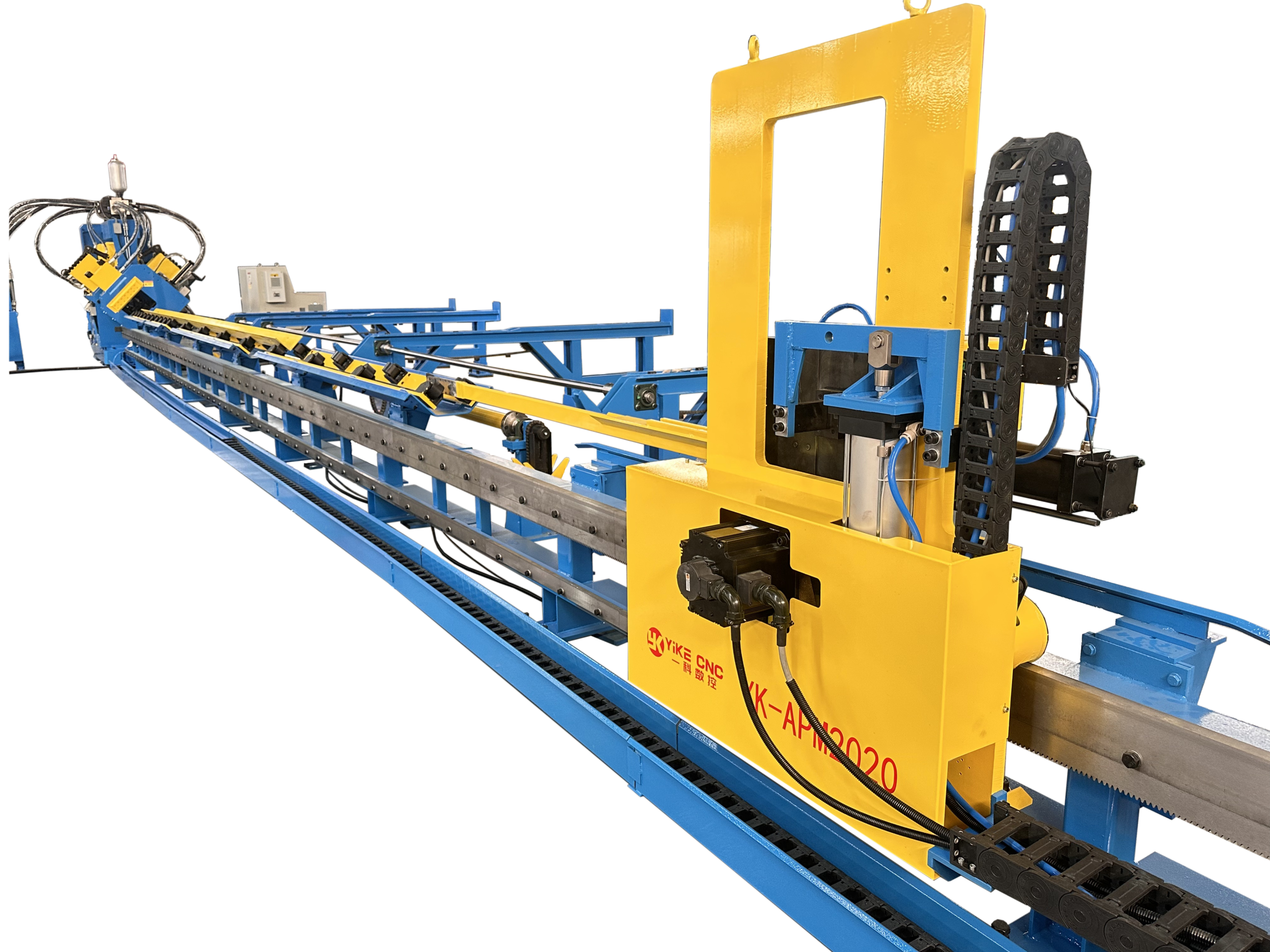 Эта производственная линия в основном используется для маркировки, пробивки и резки металлических деталей, таких как уголки и швеллеры, в производстве опор линий электропередачи и строительной отрасли.