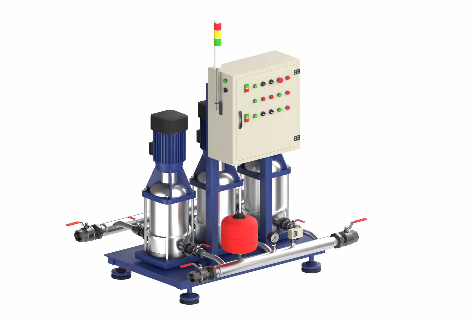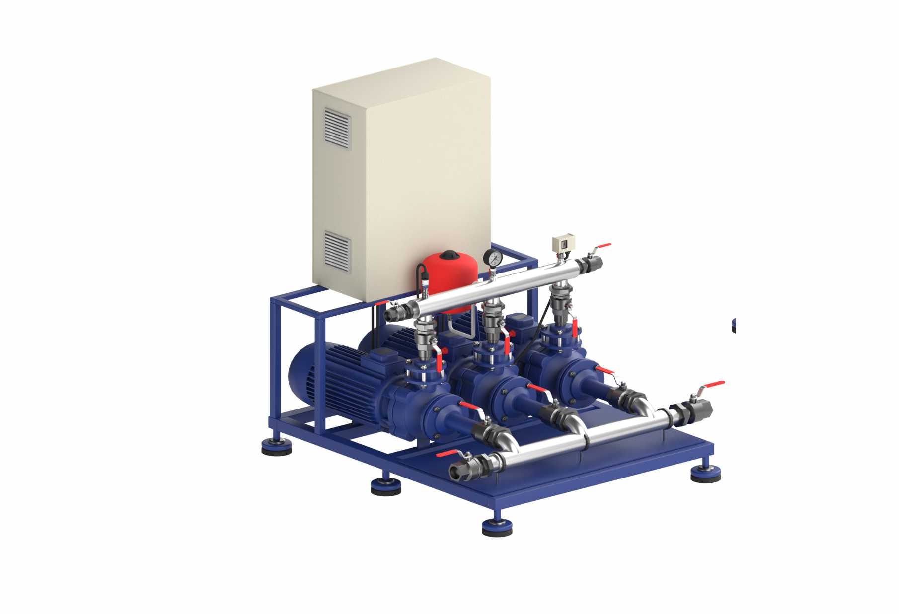 HTS NAS 2.1 — насосная станция с двумя основными и одним резервным насосом, обеспечивающая высокую надежность и стабильное давление в системах водоснабжения. Полностью автоматизирована и оснащена современной контрольно-измерительной техникой.