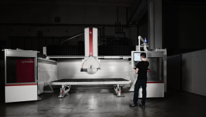 5-осевой дисковый центр для резки слэбов и крупных заготовок из мрамора и гранита; сочетает жесткую механику, мощный шпиндель и удобный HMI для высокоскоростной прямолинейной и фасонной резки в мастерских и строительных проектах.