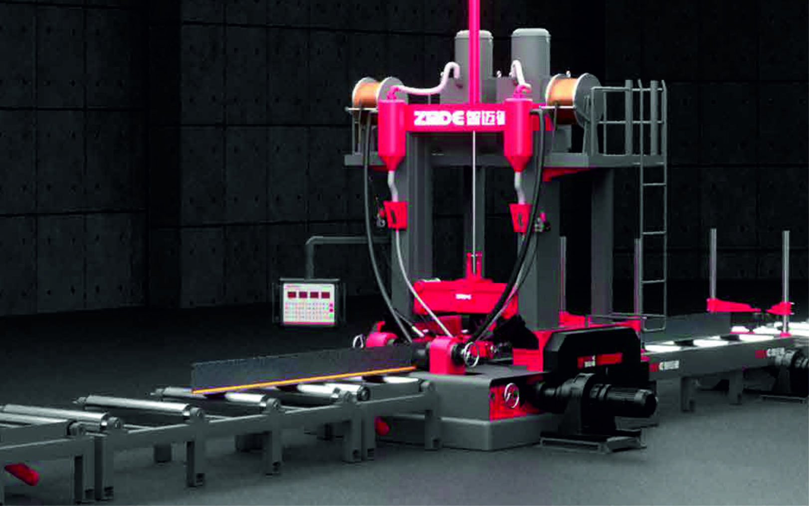 Интеллектуальная система управления обеспечивает точное позиционирование элементов, синхронизацию всех операций и контроль качества сварочных швов. Линия оснащена современным распределённым контролем с 39 осями, что гарантирует высокую точность работы и возможность обработки балок различных размеров и толщин.