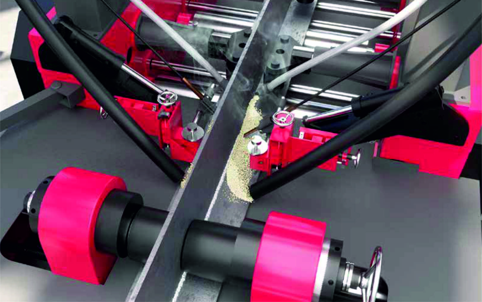 Ёмкость флюсоотделителя составляет 2×100 кг, с системой автоматического сбора и повторного использования флюса.