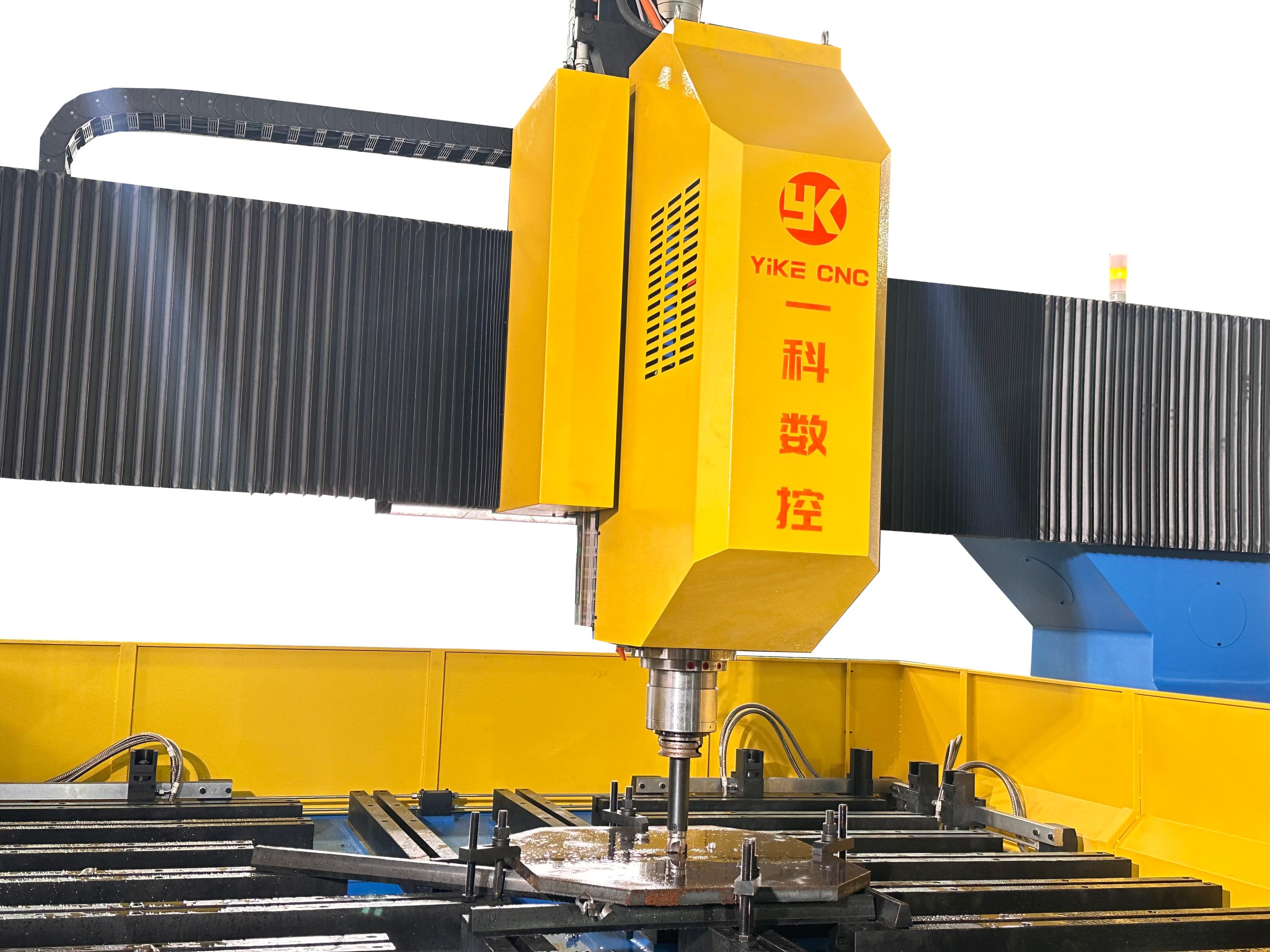 Портально‑подвижный высокоскоростной ЧПУ центр для сверления, нарезания резьбы и фрезерования стальных плит, фланцев, теплообменников, трубных решёток и поворотных опор; поддерживает твердосплавные сверла с внутренним охлаждением.
