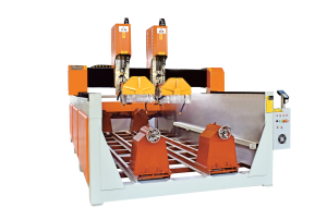 4‑осевой многофункциональный станок с двумя шпинделями для параллельной обработки: плоская зона 2000×3000 мм и цилиндрическая обработка Ø1000×3000 мм, ориентирован на серийные партии и комбинированные операции распила, фрезеровки и гравировки.